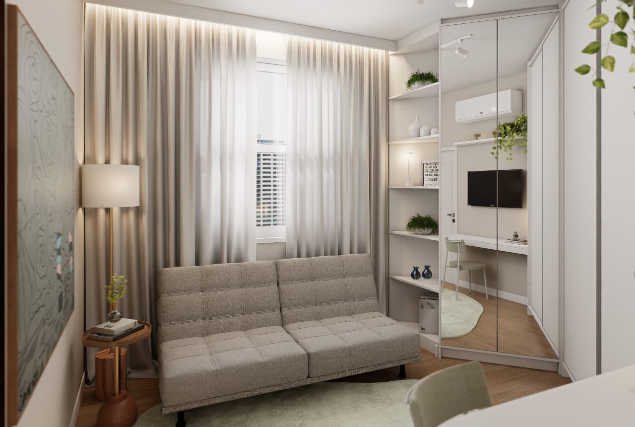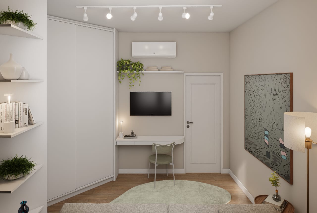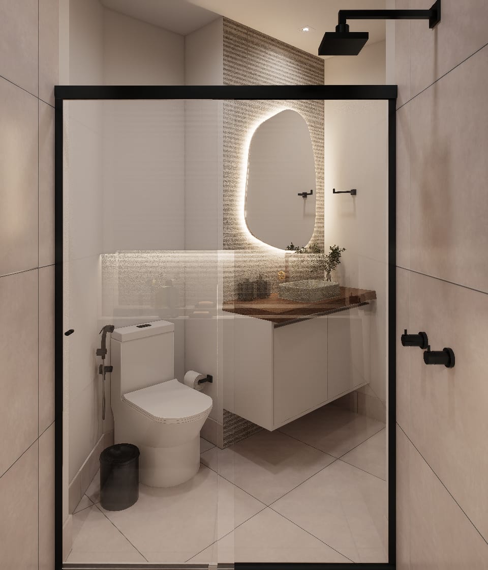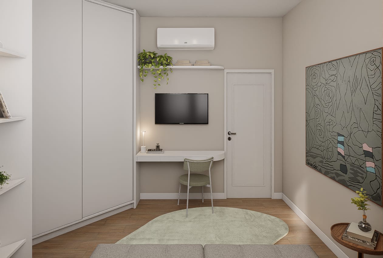 ✨ 2 quartos, sendo um deles suíte + banheiro social + banheiro de serviço + área de serviço