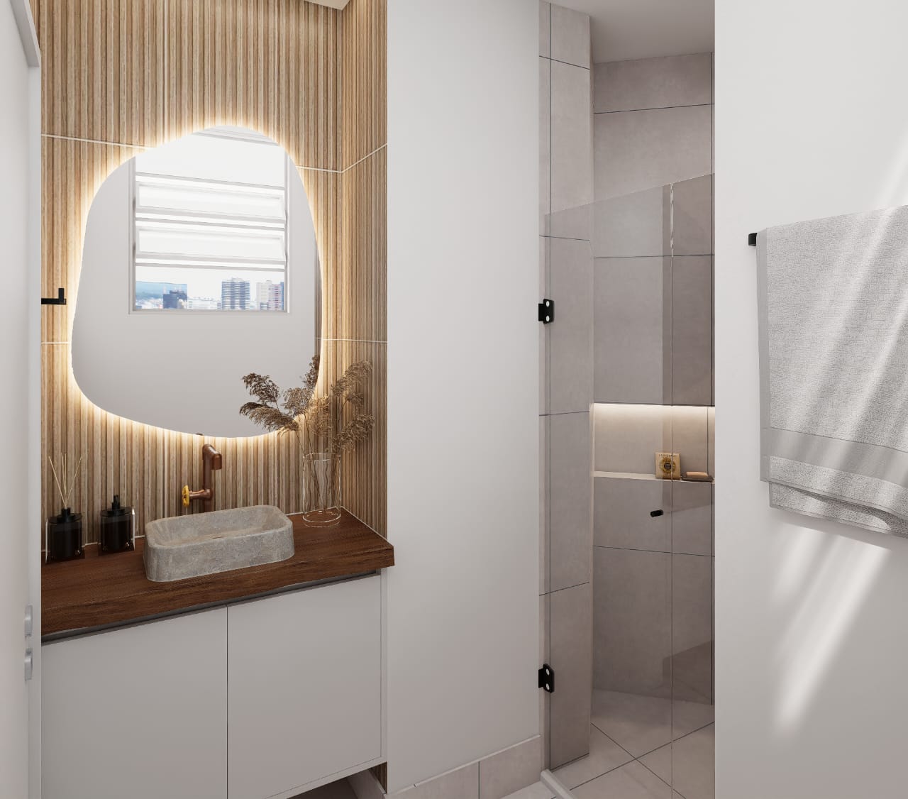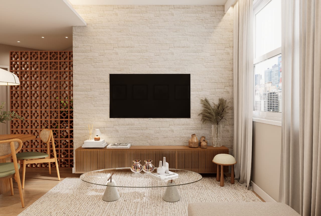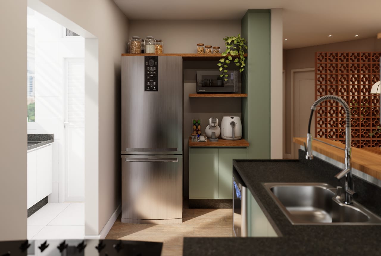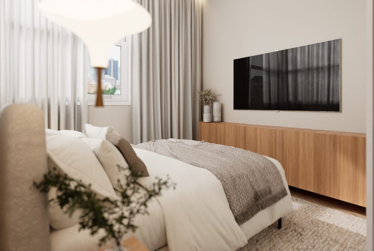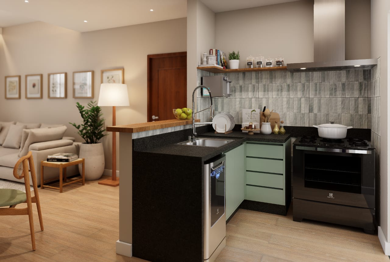 ✨ 2 quartos, sendo um deles suíte + banheiro social + banheiro de serviço + área de serviço